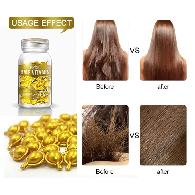 - Hair Vitamin Serum Capsule in Red - The Sevich Hair oil Capsule deeply repair damaged hair, daily care hair is smooth and silky. (Especially suitable for dry hair, not suitable for oily hair). The main ingredients are Moroccan oil, jojoba oil, vitamins A, C, E, and vitamin B5 to nourish and repair brittle and rough hair, making the hair healthier and stronger, and softer to the touch.