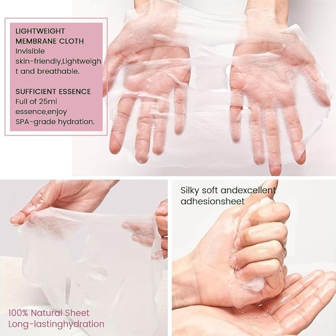 - FACIAL SKINCARE SHEET MASK:This premium women's skin care mask is silky smooth,moisturizing,refreshing and has increased efficacy and adhesion to block evaporation and lock in moisture for a hydrating effect that lasts all day