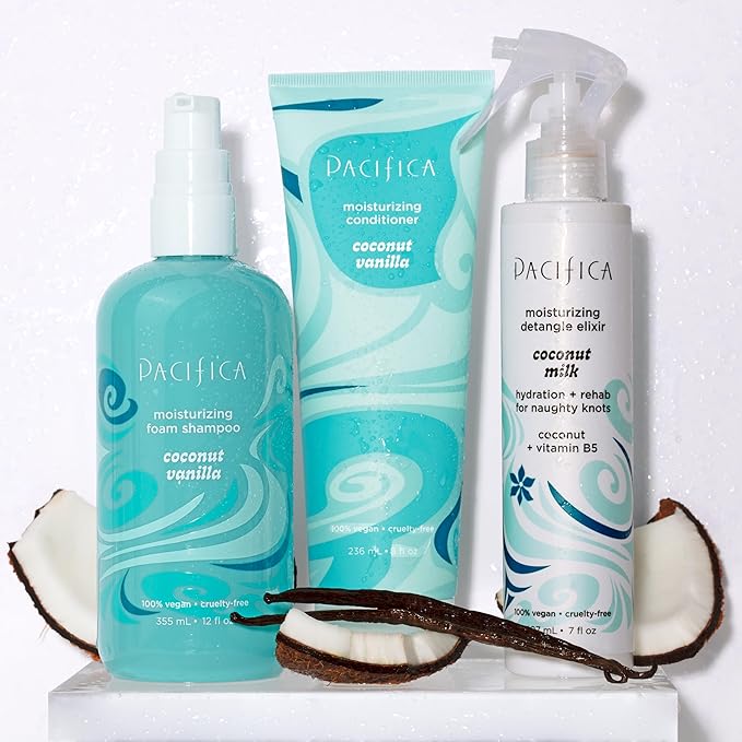 Pacifica Coconut Vanilla Moisturizing Hair Conditioner – Deep Hydrating Treatment for Dry & Damaged Hair, Restorative Shine, Vegan & Sulfate Free Clean Beauty & Hair Care 8 fl oz
