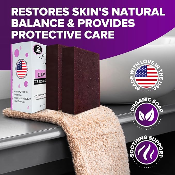 - Enjoy a spa-like experience at home with iHeart’s Lemongrass and Lavender soap bars. Perfect for all skin types, this organic bar soap cleanses gently, preserving your skin's natural oils for softness and balance.