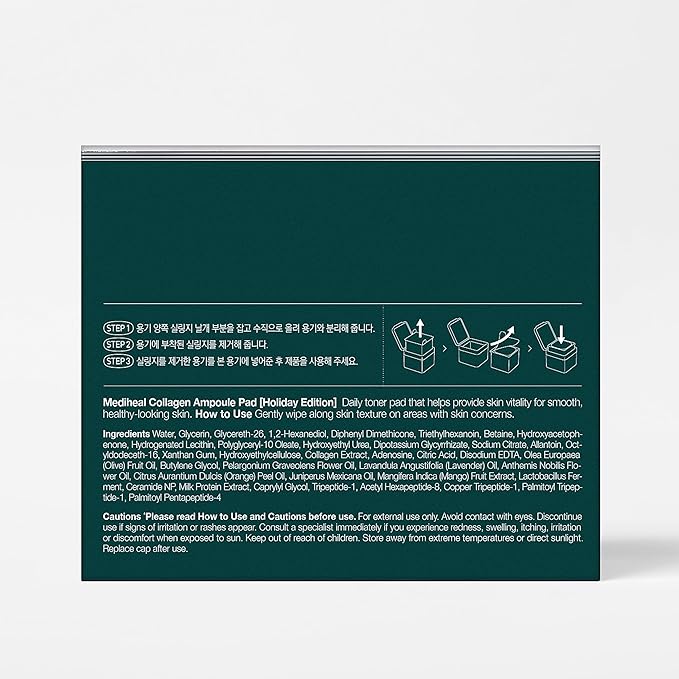 Mediheal Holiday Edition Collagen Ampoule Pad –Skin Firming & Restore Elasticity - Tighten Wrinkles & Lines - Vegan Eco Silk Pads,100 Pads,Christmas Gift