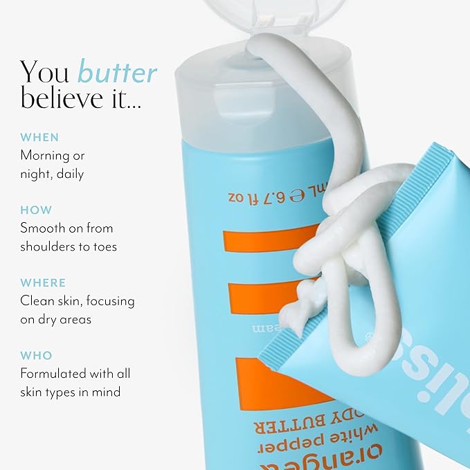 - BLOOD ORANGE & WHITE PEPPER FOR RICH NOURISHMENT: This unique body butter combines blood orange and spicy white pepper for a warm, uplifting scent that leaves skin moisturized and rejuvenated