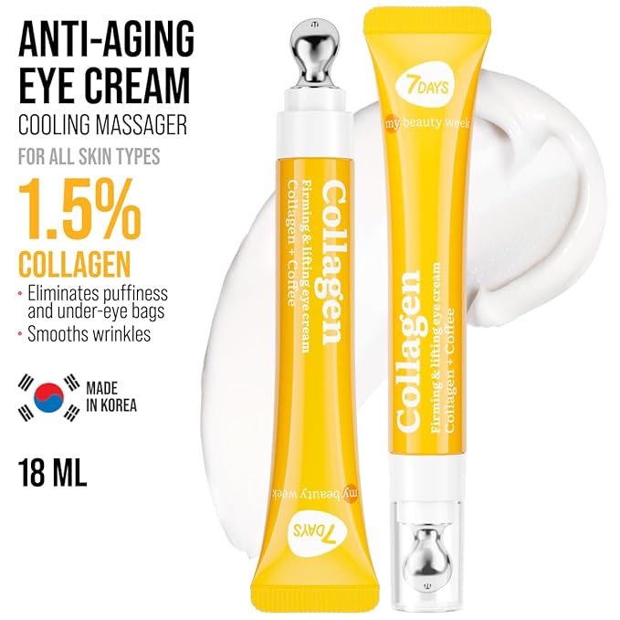 7DAYS Eye Cream with Collagen – Korean Skin Care Under Eye cream Treatment with Cooling Applicator, Anti Aging & Brightening Formula for Puffiness and Fine Lines – 0.6 fl. oz