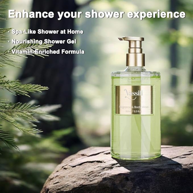 Vassili Fragrance Body Wash - Long-Lasting Aroma with Orange Blossom, Green Tea & Citrus, Hydrating & Moisturizing Formula, Gentle for All Skin Types,12.3 Fl Oz(Mystic Mist)
