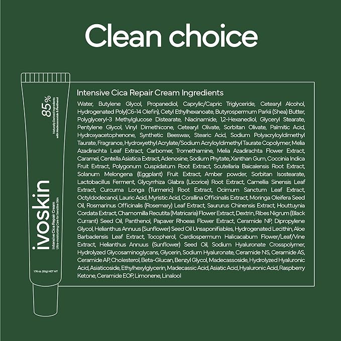 - INTENSIVE SKIN REPAIR: A powerful blend of Centella Asiatica Extract and plant-based ingredients, designed to soothe and repair irritated skin.