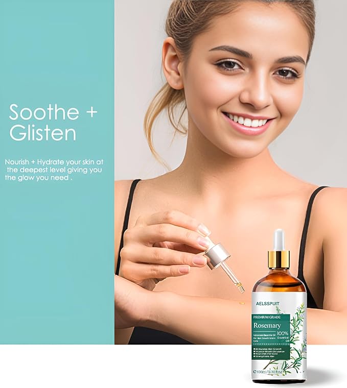 - DIRECTIONS FOR USE: Using the dropper, apply a small amount of Rosemary Essential Oil to scalp, hair roots, eyebrows or eyelashes. Massage gently with fingertips for 2-3 minutes until absorbed. You can also add a few drops of Rosemary essential oil to your shampoo or conditioner to improve blood circulation to the scalp, improve hair quality, prevent hair loss and stimulate hair growth. In addition, mixing Rosemary essential oil with a carrier oil and applying it to the skin can help improve oily skin and relieve redness