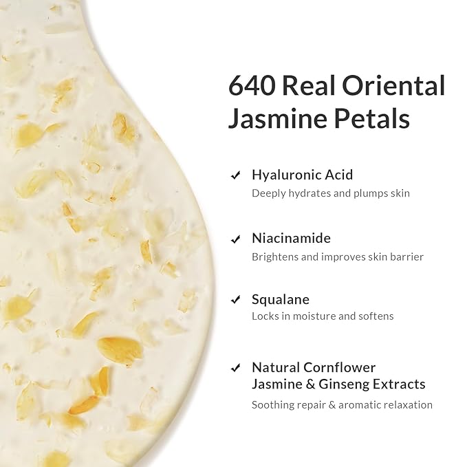 - Real Jasmine Petals for a Luxurious Floral Bath - Each 24.3oz bottle contains approximately 640 edible-grade jasmine petals, suspended in a crystal-clear gel for a visually stunning, spa-like shower experience.