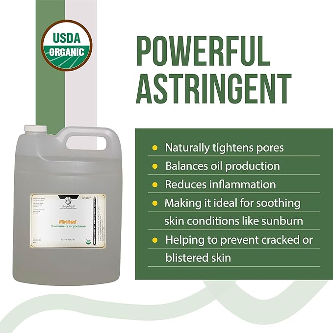 - Premium Quality, Made in the USA – Sourced and crafted in the USA using traditional boiling methods, this organic witch hazel retains its natural tannins, flavonoids, and gallic acid. Always dilute with a carrier oil before applying directly to the skin, and enjoy its astringent and skincare properties for your health and beauty needs.