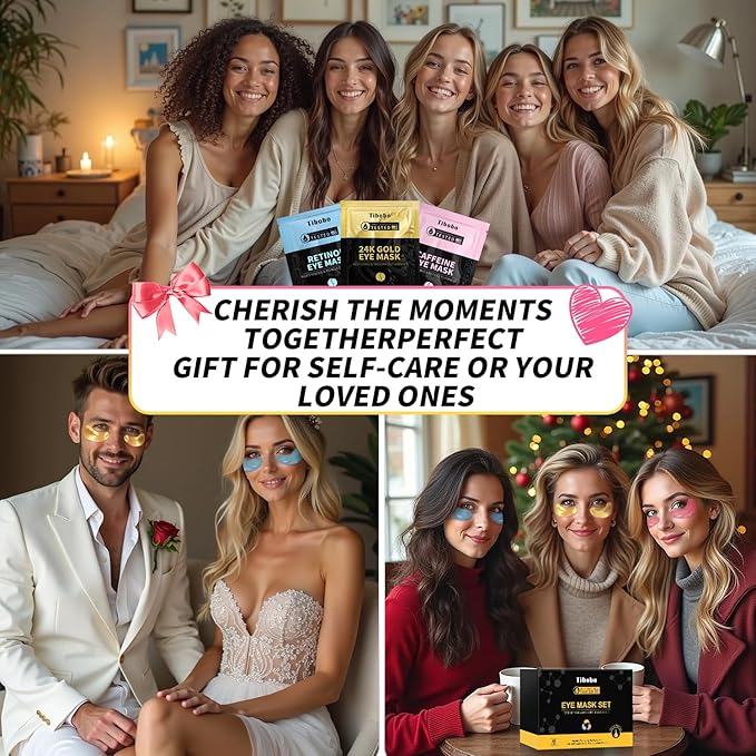 - Refreshing and Soothing Eye Relaxation Gift for Women & Men: This set includes 8 pairs of 24K Gold Eye Masks, 8 pairs of Retinol Eye Patches, and 8 pairs of Caffeine Eye Masks.Perfect as a easter basket stuffers, Christmas gift, stocking stuffer, Valentine's Day surprise, birthday present, or bachelorette party favor! If you're not 100% satisfied, let us know, and we'll make it right!