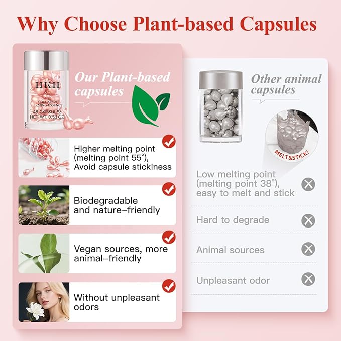 - Plant-Based Capsule Design: Retinol serum is packaged in biodegradable capsules that resist melting in hot environments. Each capsule is individually sealed to protect oxygen-sensitive active ingredients from degradation, ensuring maximum potency. Toss them in your gym bag or suitcase — they remain intact even during travel