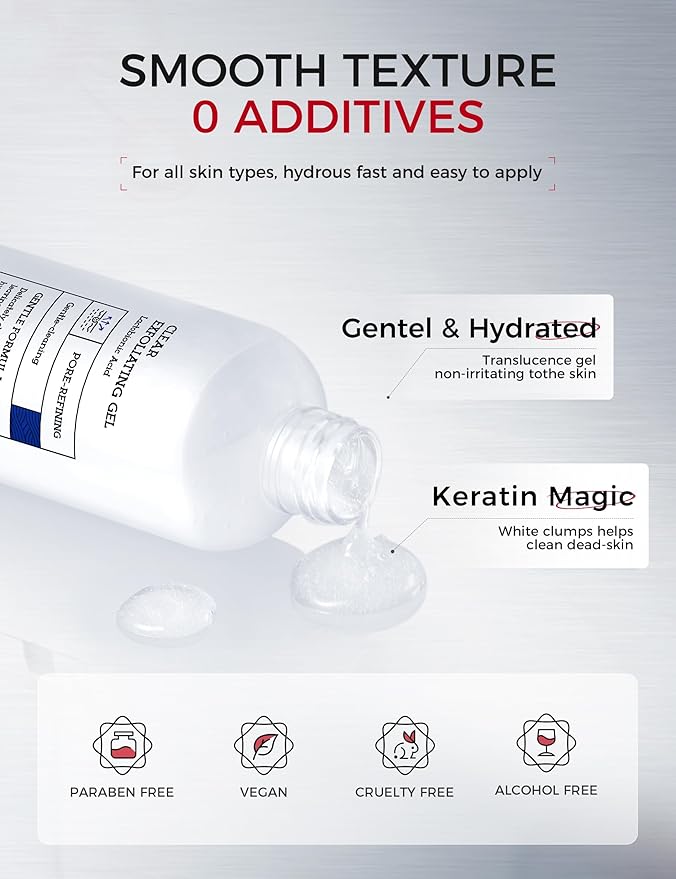 - DEEP CLEANSING & PORE REFINING: Triple Keratin Complex, generates fibrous particles, binds with dead skin cells and impurities to create visible residue. Peeling gel for face formula lifts away debris and dead skin cells without stripping essential moisture. keratin Complex works to improve skin texture, support the skin barrier, and minimize moisture loss