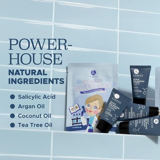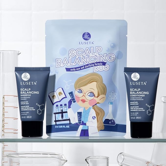 Luseta Scalp-Balancing Shampoo and Conditioner Set for Women, Reducing Build-up with Salicylic Acid, Anti-Dandruff Shampoo for Men, Clarifying Shampoo for Refreshing, pH-Balanced, 2 x 1.01 Fl Oz