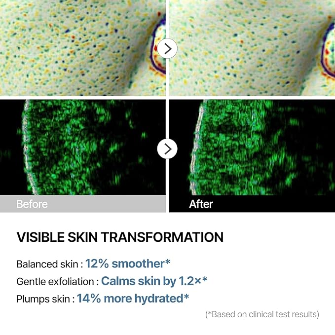 - Low-Irritation Multi-Acid Exfoliation : A dermatologist-inspired blend of AHA, BHA, PHA, and LHA gently removes dead skin cells, unclogs pores, and promotes skin renewal — safe for sensitive and dry skin. (Low Irritation)