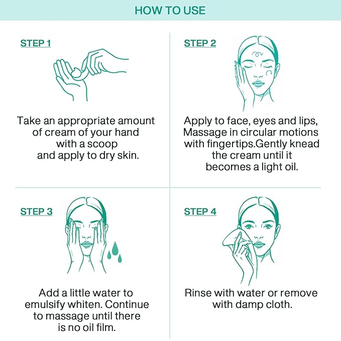 - 🌼How To Use: Apply the makeup melting balm with dry hands, gently massage over your face, focus on areas with excess sebum. Add water to your face to change the oil into a milky texture, activating the emulsifying effect. Rinse thoroughly with lukewarm water—no tissue needed.