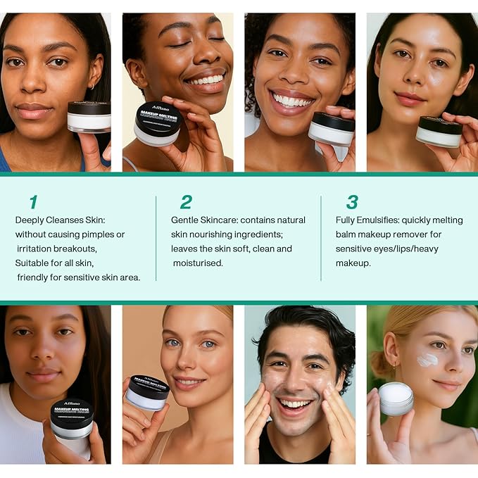 - 🌼Suitable for All Skin Types : Our make up remover balm is a 100% vegan and cruelty-free. No added colors and fragrances. Contains 4 plant-derived oils, including Jojoba Oil and Meadowfoam Seed Oil to cleanse and soften sebum while preventing pore clogging. Perfect for sensitive skin, gentle and non-irritating without acne. And easy to rinse, no residue.