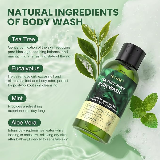 - 【Naturally Refreshing Formulas】 Travel Shampoo and Conditioner infused with rosemary oil to nourish hair, mint for a cooling sensation, and tea tree oil to purify sclp. Travel Body Wash infused with tea tree oil, mint, and eucalyptus helps soothe the skin, moisturizing, refreshing and hydrating. Free from sulfates, parabens, and harsh chemicals.