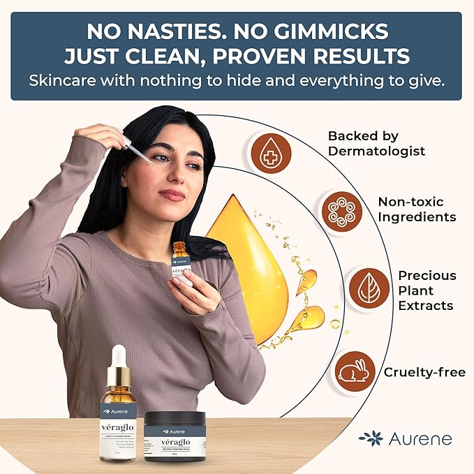 Vรฉraglo Retinol Skin Booster Serum & Hydrating Moisturizer Face Cream Set โ Anti Aging Serum and Moisturizer with Hyaluronic Acid & Collagen for Wrinkles, Fine Lines & Dark Circles