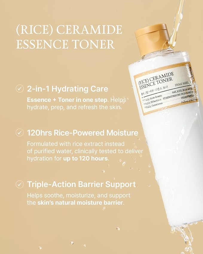 FULLY Rice Ceramide Essence Toner – Milky Korean Toner for Glass Skin, Hydrating Rice Water & Ceramide Formula for Moisture Barrier, Dewy Glow, Fragrance-Free, Vegan & Dermatologist Tested, 8.45 fl.oz