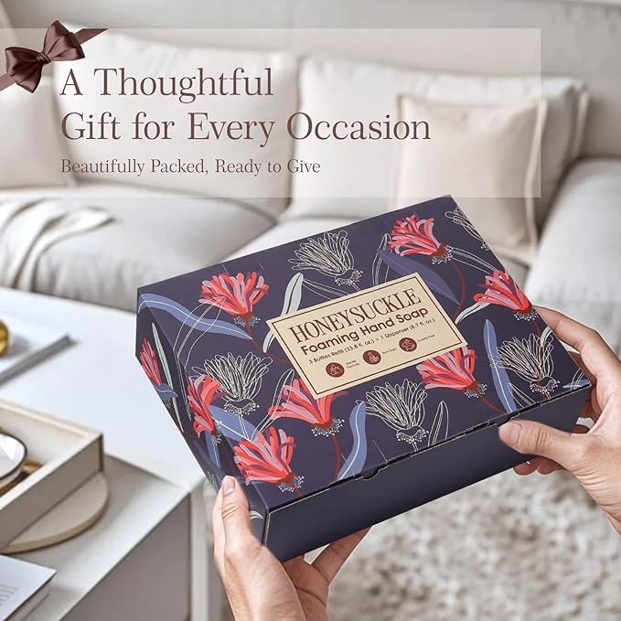 Foaming Hand Soap Refill Gift Set – Honeysuckle Scent – 3 Pack (1000ML Each) with Dispenser, Gentle & Moisturizing Plant-Based Formula – Bulk Refill Bottles for Bathroom & Kitchen Use