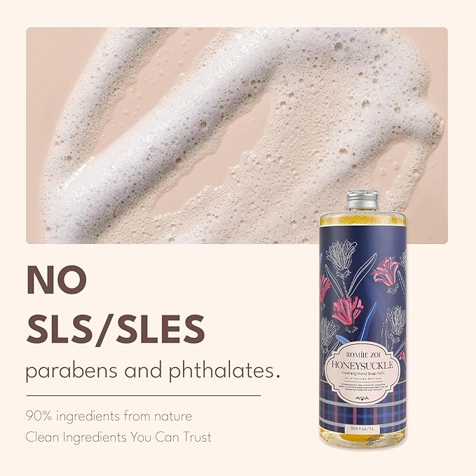 - 【Complete Soap Refills Set with Foaming Pump】ROMIIE ZOI Foaming Hand Soap Set includes 3* 33.8 Fl Oz bottles of luxurious foaming hand soap and a high-quality foaming pump dispenser. The foaming pump provides a rich, airy lather with just a single press, making hand washing more convenient, efficien.