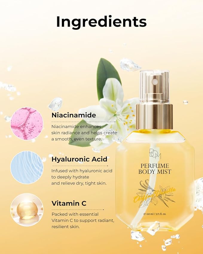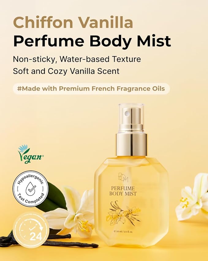 - ELEGANT VANILLA FRAGRANCE BLEND: The body mist features a soft, comforting scent of vanilla, delicately layered with notes of jasmine and mandarin. The fragrance is light yet long-lasting perfect for daily wear without being overpowering