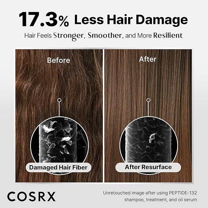 - Hair Care Routine for Best Results: Accompanying the PEPTIDE-132 Hair Bonding Trio all together maximizes the benefits of bond repair hair treatment. Cleanse the scalp and hair thoroughly with COSRX PEPTIDE-132 Shampoo everyday. Follow with COSRX PEPTIDE-132 Hair Treatment twice a week to bond split ends and repair damaged hair. Finish off with COSRX PEPTIDE-132 Hair Oil on semi-wet hair to lock in moisture, tame frizz, and deliver long-lasting shine.