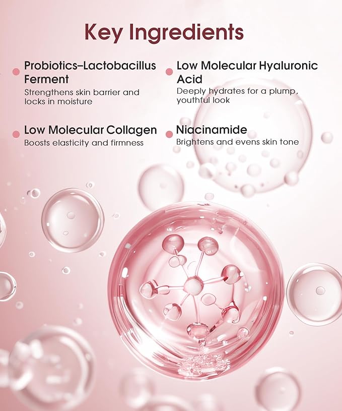 - 【Brightening and whitening effect】: Aehocp collagen face mask, formulated with probiotics from Lactobacillus fermentation, hyaluronic acid, nicotinamide and peptides. Improves 90% skin moisturizing, 90% skin tone brightness, 90% water locking, these ingredients jointly strengthen the skin barrier, lock in moisture and promote radiant light