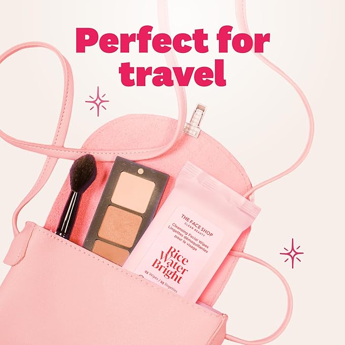 THE FACE SHOP X GLAMZILLA Rice Water Bright Cleansing Wipes On-the-Go Bundle for Face, Moisturizing, Infused with Rice Extract, Cleansing Facial Wipes, 25 Count (Pack of 3)