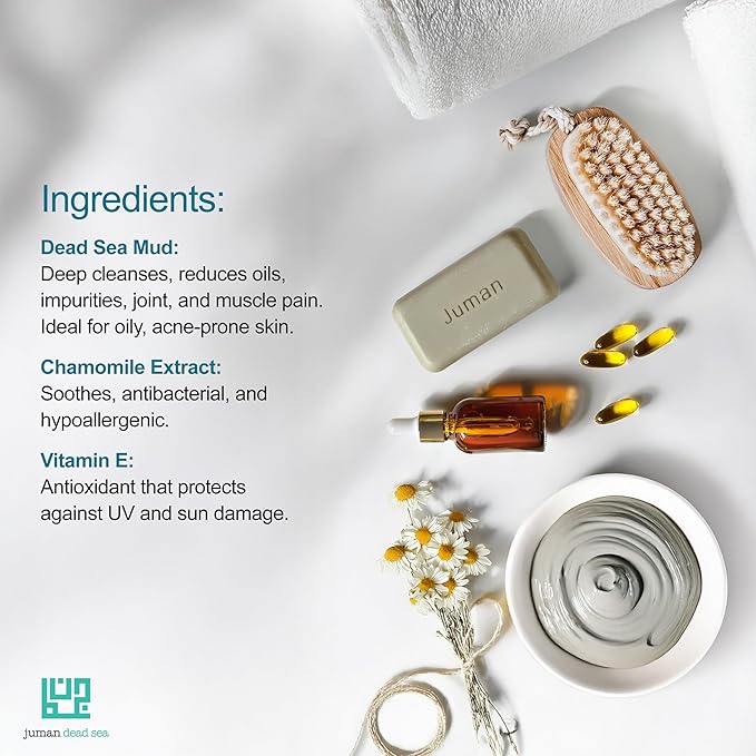 - Nourishing Benefits: Formulated with Dead Sea Mud to detoxify skin, absorb excess oil, and ease joint and muscle pain; Chamomile Flower Extract to soothe irritation and hydrate dry skin; and Vitamin E to protect against UV damage and promote skin healing.
