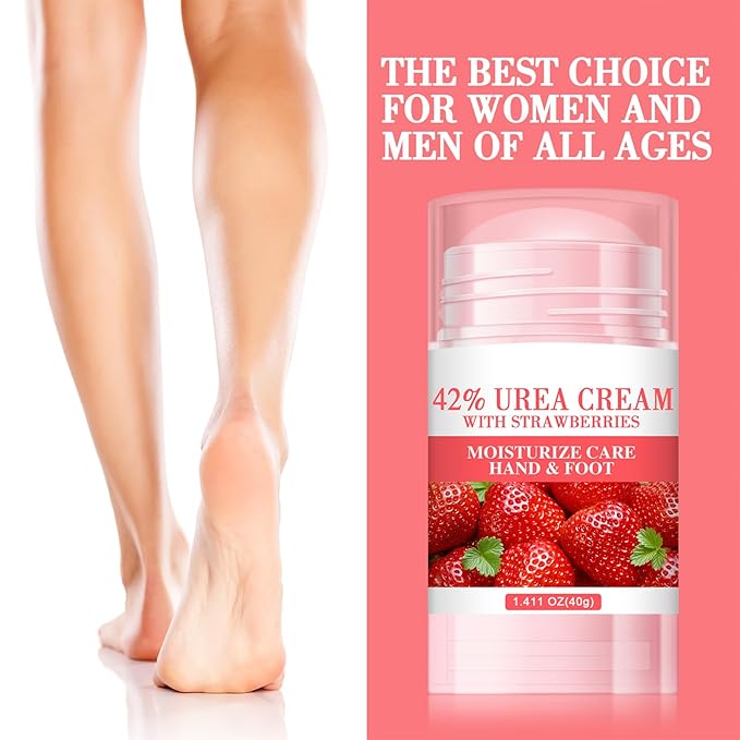 60% Urea Cream - 1.41 oz Strawberry Foot Hand Cream Stick for Dry & Cracked Feet Elbows Knees Heels Hands, Hydrates & Nourish Foot Care for Softening and Moisturizing, Removing Calloused Skin
