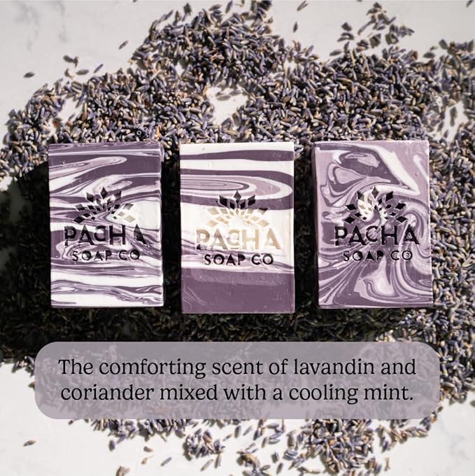 Pacha Soap Co. Bar Soap - Premium, Handcrafted, Hydrating, Natural Face Wash, Hand Cleanser, Body Wash, Soothing Essential Oils (French Lavender, 5-Pack, 4 oz ea)