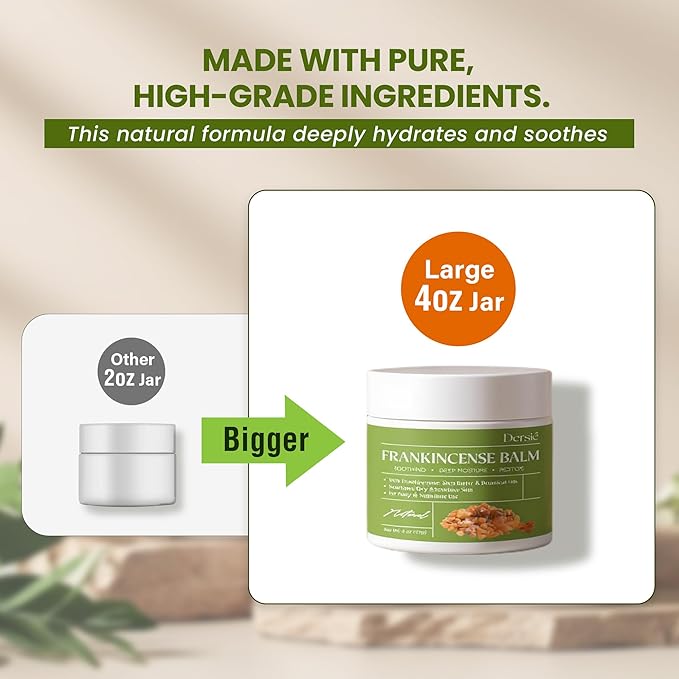 - Clean, Effective Formula: Dersie Frankincense Balm stands out with enhanced soothing benefits paired with deep skin nourishment - offering care beyond typical balms. Crafted with clean, cruelty-free ingredients, it contains no parabens, sulfates, synthetic additives, toxins, fillers, or fragrances, ensuring a gentle, non-irritating experience that you can trust.