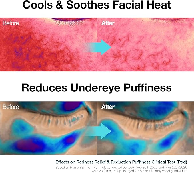 - INSTANT COOLING RELIEF FOR PUFFINESS & REDNESS: Delivers an immediate cooling effect, lowering the skin temperature by up to 44.6°F, reducing morning swelling, facial heat, and visible redness from sun exposure and irritation