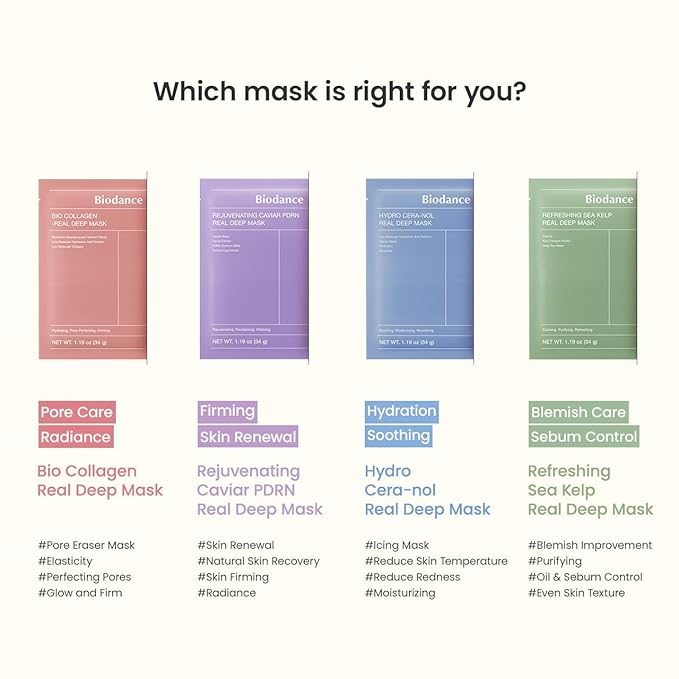 BIODANCE Multi-Care Experience Kit: Caviar PDRN, Bio Collagen, Cera-nol & Sea Kelp Real Deep Gel Mask Dicovery Bundle — Glass Skin, Plumping Hydration, Firming, Calming All-in-one Korean Skincare Set