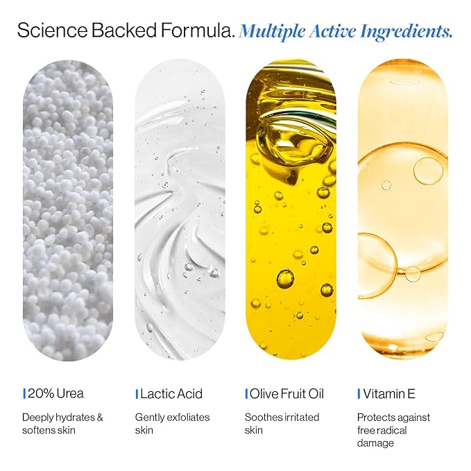 - With 20% Urea & 2% Lactic Acid to exfoliate, renew, and deeply nourish. Targets cracked, rough & dry heels for smoother feet with faster, long-lasting results.