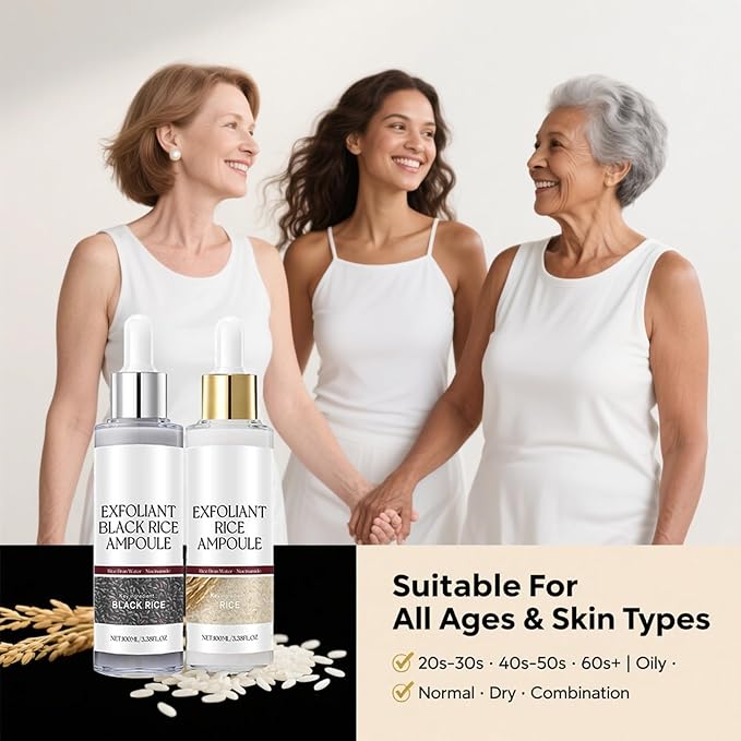- ✨ 【Honest Dual-Day & Night Renewal - Real Results, No False Ads】 Maximize real skincare benefits with our two-step system. The White Rice Ampoule brightens and protects by day; the black rice exfoliant repairs and purifies by night. This consistent 24/7 care delivers visible improvements in texture, dullness, and pore appearance—offering a genuine rice peel shot experience without misleading claims or social media tricks.