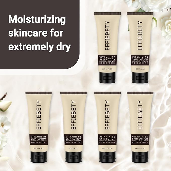6 Pack Vitamin B5 Skin Lotion, Gentle Moisturizing Lotion Nourishes Dry Skin With Hibiscus Flower, Rose & Peony, Non-Comedogenic, Travel-Size (1.7 fl oz)